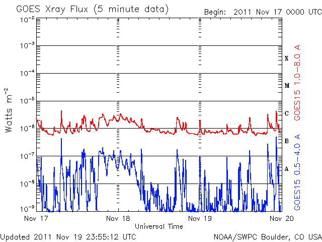 De operationele data in de bovenstaande grafiek werd aangepast om de schaalfactor te verwijderen die werd toegepast door het Space Weather Prediction Center (SWPC). Vanwege de SWPC-schaalfactor in de operationele data werden de zonnevlammen 42% kleiner gerapporteerd dan deze in de wetenschappelijke data. De schaalfactor werd ook verwijderd uit de lijst met zonnevlammen om de werkelijke fysieke eenheden weer te geven.