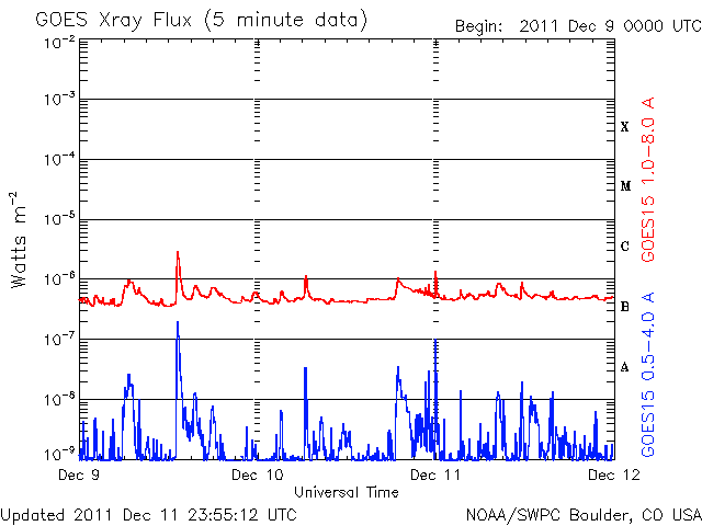 De operationele data in de bovenstaande grafiek werd aangepast om de schaalfactor te verwijderen die werd toegepast door het Space Weather Prediction Center (SWPC). Vanwege de SWPC-schaalfactor in de operationele data werden de zonnevlammen 42% kleiner gerapporteerd dan deze in de wetenschappelijke data. De schaalfactor werd ook verwijderd uit de lijst met zonnevlammen om de werkelijke fysieke eenheden weer te geven.