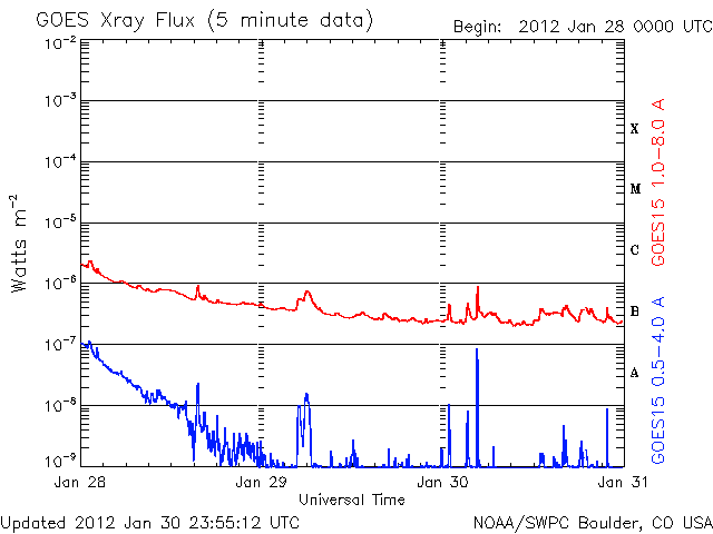 De operationele data in de bovenstaande grafiek werd aangepast om de schaalfactor te verwijderen die werd toegepast door het Space Weather Prediction Center (SWPC). Vanwege de SWPC-schaalfactor in de operationele data werden de zonnevlammen 42% kleiner gerapporteerd dan deze in de wetenschappelijke data. De schaalfactor werd ook verwijderd uit de lijst met zonnevlammen om de werkelijke fysieke eenheden weer te geven.