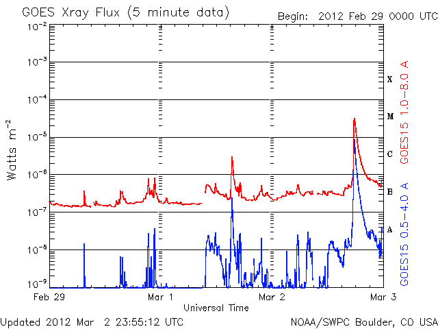 De operationele data in de bovenstaande grafiek werd aangepast om de schaalfactor te verwijderen die werd toegepast door het Space Weather Prediction Center (SWPC). Vanwege de SWPC-schaalfactor in de operationele data werden de zonnevlammen 42% kleiner gerapporteerd dan deze in de wetenschappelijke data. De schaalfactor werd ook verwijderd uit de lijst met zonnevlammen om de werkelijke fysieke eenheden weer te geven.