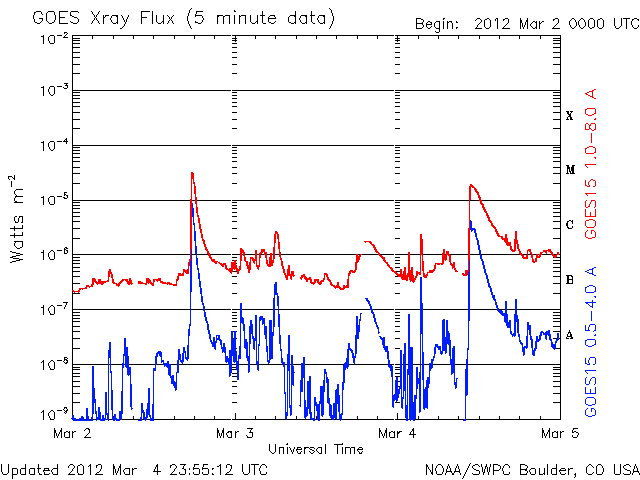 De operationele data in de bovenstaande grafiek werd aangepast om de schaalfactor te verwijderen die werd toegepast door het Space Weather Prediction Center (SWPC). Vanwege de SWPC-schaalfactor in de operationele data werden de zonnevlammen 42% kleiner gerapporteerd dan deze in de wetenschappelijke data. De schaalfactor werd ook verwijderd uit de lijst met zonnevlammen om de werkelijke fysieke eenheden weer te geven.