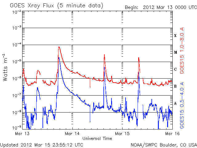 De operationele data in de bovenstaande grafiek werd aangepast om de schaalfactor te verwijderen die werd toegepast door het Space Weather Prediction Center (SWPC). Vanwege de SWPC-schaalfactor in de operationele data werden de zonnevlammen 42% kleiner gerapporteerd dan deze in de wetenschappelijke data. De schaalfactor werd ook verwijderd uit de lijst met zonnevlammen om de werkelijke fysieke eenheden weer te geven.
