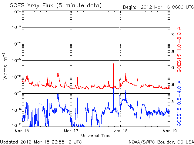 De operationele data in de bovenstaande grafiek werd aangepast om de schaalfactor te verwijderen die werd toegepast door het Space Weather Prediction Center (SWPC). Vanwege de SWPC-schaalfactor in de operationele data werden de zonnevlammen 42% kleiner gerapporteerd dan deze in de wetenschappelijke data. De schaalfactor werd ook verwijderd uit de lijst met zonnevlammen om de werkelijke fysieke eenheden weer te geven.