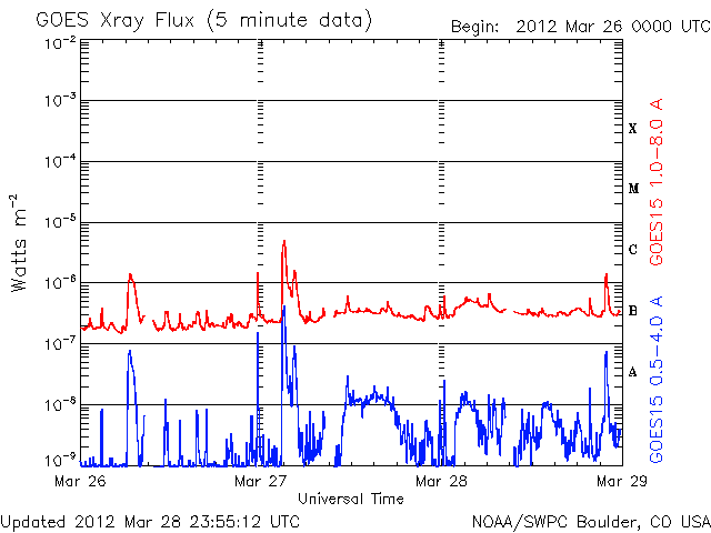 De operationele data in de bovenstaande grafiek werd aangepast om de schaalfactor te verwijderen die werd toegepast door het Space Weather Prediction Center (SWPC). Vanwege de SWPC-schaalfactor in de operationele data werden de zonnevlammen 42% kleiner gerapporteerd dan deze in de wetenschappelijke data. De schaalfactor werd ook verwijderd uit de lijst met zonnevlammen om de werkelijke fysieke eenheden weer te geven.
