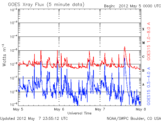 De operationele data in de bovenstaande grafiek werd aangepast om de schaalfactor te verwijderen die werd toegepast door het Space Weather Prediction Center (SWPC). Vanwege de SWPC-schaalfactor in de operationele data werden de zonnevlammen 42% kleiner gerapporteerd dan deze in de wetenschappelijke data. De schaalfactor werd ook verwijderd uit de lijst met zonnevlammen om de werkelijke fysieke eenheden weer te geven.