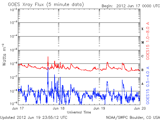 De operationele data in de bovenstaande grafiek werd aangepast om de schaalfactor te verwijderen die werd toegepast door het Space Weather Prediction Center (SWPC). Vanwege de SWPC-schaalfactor in de operationele data werden de zonnevlammen 42% kleiner gerapporteerd dan deze in de wetenschappelijke data. De schaalfactor werd ook verwijderd uit de lijst met zonnevlammen om de werkelijke fysieke eenheden weer te geven.