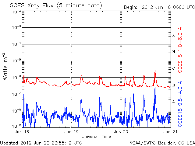 De operationele data in de bovenstaande grafiek werd aangepast om de schaalfactor te verwijderen die werd toegepast door het Space Weather Prediction Center (SWPC). Vanwege de SWPC-schaalfactor in de operationele data werden de zonnevlammen 42% kleiner gerapporteerd dan deze in de wetenschappelijke data. De schaalfactor werd ook verwijderd uit de lijst met zonnevlammen om de werkelijke fysieke eenheden weer te geven.