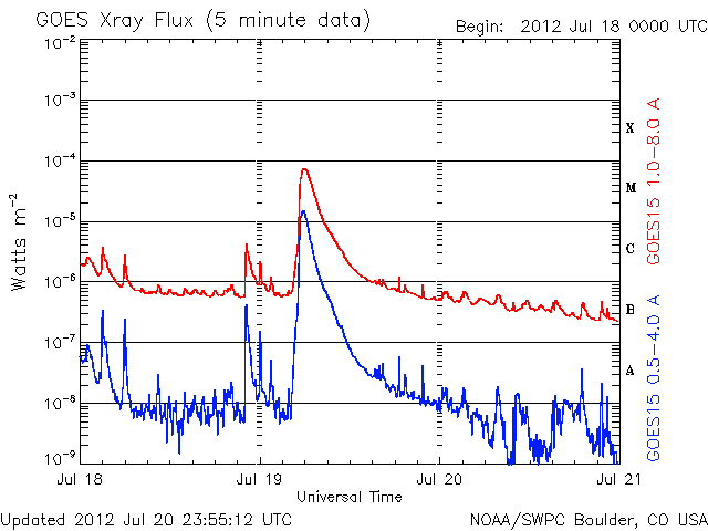 De operationele data in de bovenstaande grafiek werd aangepast om de schaalfactor te verwijderen die werd toegepast door het Space Weather Prediction Center (SWPC). Vanwege de SWPC-schaalfactor in de operationele data werden de zonnevlammen 42% kleiner gerapporteerd dan deze in de wetenschappelijke data. De schaalfactor werd ook verwijderd uit de lijst met zonnevlammen om de werkelijke fysieke eenheden weer te geven.