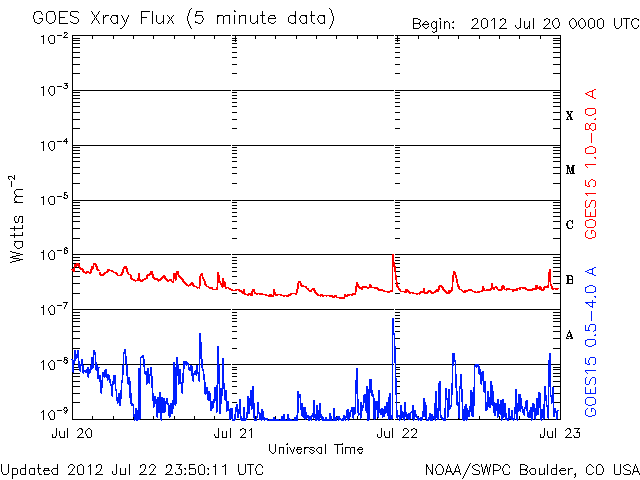 De operationele data in de bovenstaande grafiek werd aangepast om de schaalfactor te verwijderen die werd toegepast door het Space Weather Prediction Center (SWPC). Vanwege de SWPC-schaalfactor in de operationele data werden de zonnevlammen 42% kleiner gerapporteerd dan deze in de wetenschappelijke data. De schaalfactor werd ook verwijderd uit de lijst met zonnevlammen om de werkelijke fysieke eenheden weer te geven.
