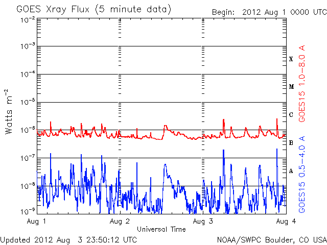 De operationele data in de bovenstaande grafiek werd aangepast om de schaalfactor te verwijderen die werd toegepast door het Space Weather Prediction Center (SWPC). Vanwege de SWPC-schaalfactor in de operationele data werden de zonnevlammen 42% kleiner gerapporteerd dan deze in de wetenschappelijke data. De schaalfactor werd ook verwijderd uit de lijst met zonnevlammen om de werkelijke fysieke eenheden weer te geven.