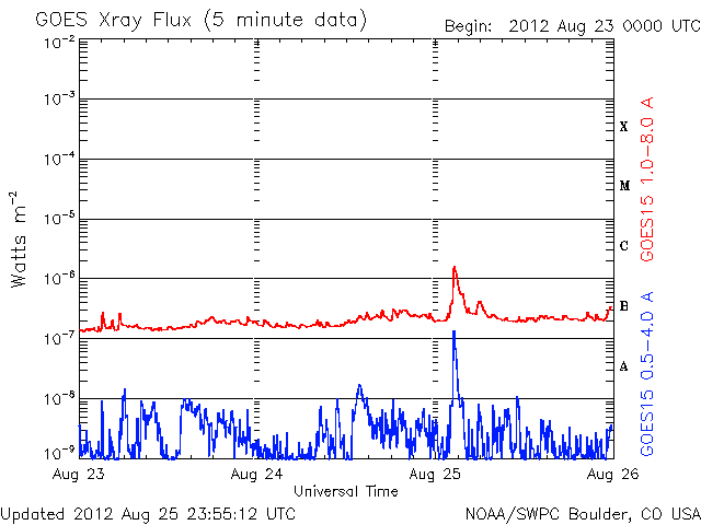 De operationele data in de bovenstaande grafiek werd aangepast om de schaalfactor te verwijderen die werd toegepast door het Space Weather Prediction Center (SWPC). Vanwege de SWPC-schaalfactor in de operationele data werden de zonnevlammen 42% kleiner gerapporteerd dan deze in de wetenschappelijke data. De schaalfactor werd ook verwijderd uit de lijst met zonnevlammen om de werkelijke fysieke eenheden weer te geven.
