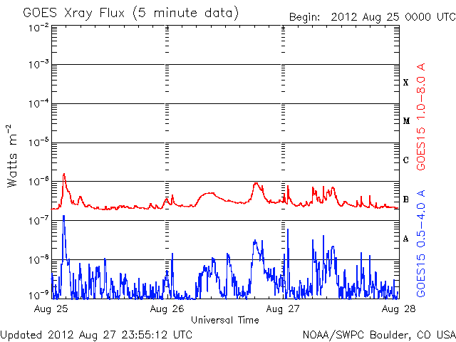 De operationele data in de bovenstaande grafiek werd aangepast om de schaalfactor te verwijderen die werd toegepast door het Space Weather Prediction Center (SWPC). Vanwege de SWPC-schaalfactor in de operationele data werden de zonnevlammen 42% kleiner gerapporteerd dan deze in de wetenschappelijke data. De schaalfactor werd ook verwijderd uit de lijst met zonnevlammen om de werkelijke fysieke eenheden weer te geven.