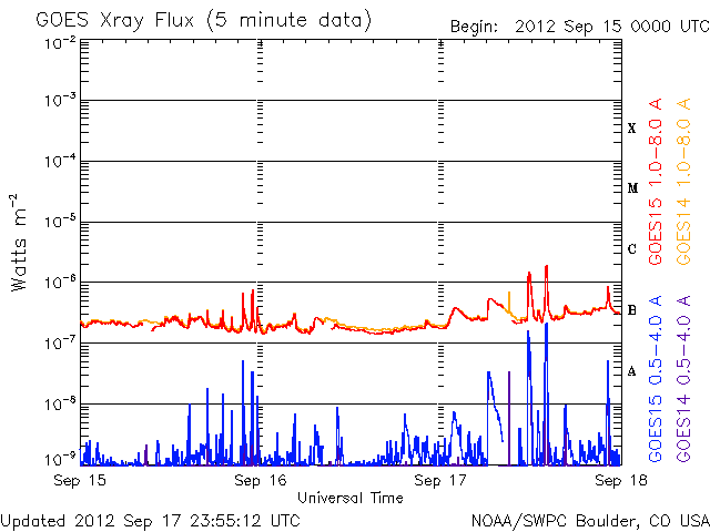 De operationele data in de bovenstaande grafiek werd aangepast om de schaalfactor te verwijderen die werd toegepast door het Space Weather Prediction Center (SWPC). Vanwege de SWPC-schaalfactor in de operationele data werden de zonnevlammen 42% kleiner gerapporteerd dan deze in de wetenschappelijke data. De schaalfactor werd ook verwijderd uit de lijst met zonnevlammen om de werkelijke fysieke eenheden weer te geven.