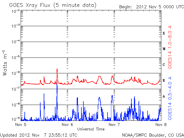 De operationele data in de bovenstaande grafiek werd aangepast om de schaalfactor te verwijderen die werd toegepast door het Space Weather Prediction Center (SWPC). Vanwege de SWPC-schaalfactor in de operationele data werden de zonnevlammen 42% kleiner gerapporteerd dan deze in de wetenschappelijke data. De schaalfactor werd ook verwijderd uit de lijst met zonnevlammen om de werkelijke fysieke eenheden weer te geven.