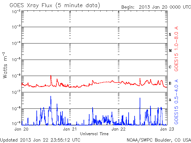 De operationele data in de bovenstaande grafiek werd aangepast om de schaalfactor te verwijderen die werd toegepast door het Space Weather Prediction Center (SWPC). Vanwege de SWPC-schaalfactor in de operationele data werden de zonnevlammen 42% kleiner gerapporteerd dan deze in de wetenschappelijke data. De schaalfactor werd ook verwijderd uit de lijst met zonnevlammen om de werkelijke fysieke eenheden weer te geven.
