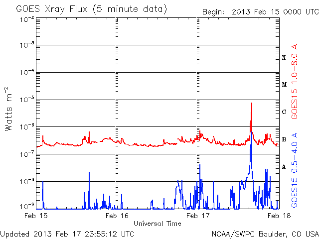 De operationele data in de bovenstaande grafiek werd aangepast om de schaalfactor te verwijderen die werd toegepast door het Space Weather Prediction Center (SWPC). Vanwege de SWPC-schaalfactor in de operationele data werden de zonnevlammen 42% kleiner gerapporteerd dan deze in de wetenschappelijke data. De schaalfactor werd ook verwijderd uit de lijst met zonnevlammen om de werkelijke fysieke eenheden weer te geven.