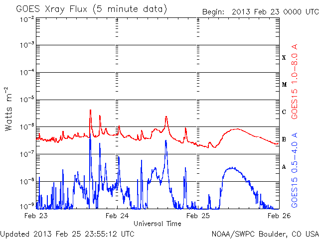 De operationele data in de bovenstaande grafiek werd aangepast om de schaalfactor te verwijderen die werd toegepast door het Space Weather Prediction Center (SWPC). Vanwege de SWPC-schaalfactor in de operationele data werden de zonnevlammen 42% kleiner gerapporteerd dan deze in de wetenschappelijke data. De schaalfactor werd ook verwijderd uit de lijst met zonnevlammen om de werkelijke fysieke eenheden weer te geven.