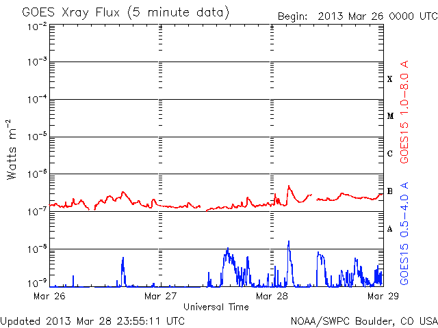 De operationele data in de bovenstaande grafiek werd aangepast om de schaalfactor te verwijderen die werd toegepast door het Space Weather Prediction Center (SWPC). Vanwege de SWPC-schaalfactor in de operationele data werden de zonnevlammen 42% kleiner gerapporteerd dan deze in de wetenschappelijke data. De schaalfactor werd ook verwijderd uit de lijst met zonnevlammen om de werkelijke fysieke eenheden weer te geven.