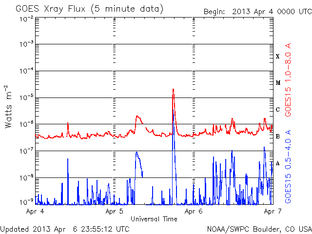 De operationele data in de bovenstaande grafiek werd aangepast om de schaalfactor te verwijderen die werd toegepast door het Space Weather Prediction Center (SWPC). Vanwege de SWPC-schaalfactor in de operationele data werden de zonnevlammen 42% kleiner gerapporteerd dan deze in de wetenschappelijke data. De schaalfactor werd ook verwijderd uit de lijst met zonnevlammen om de werkelijke fysieke eenheden weer te geven.