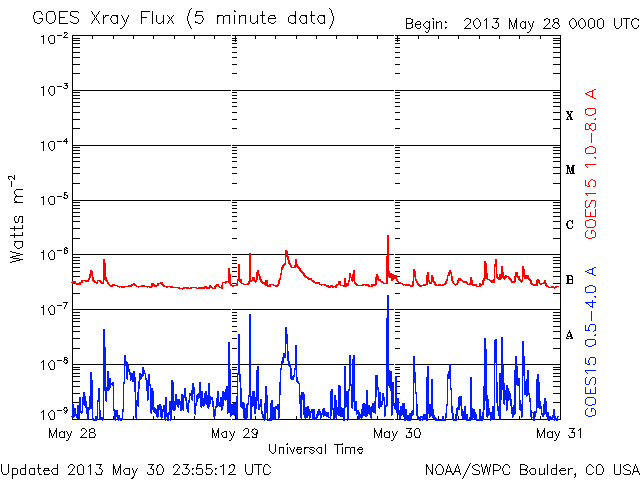 De operationele data in de bovenstaande grafiek werd aangepast om de schaalfactor te verwijderen die werd toegepast door het Space Weather Prediction Center (SWPC). Vanwege de SWPC-schaalfactor in de operationele data werden de zonnevlammen 42% kleiner gerapporteerd dan deze in de wetenschappelijke data. De schaalfactor werd ook verwijderd uit de lijst met zonnevlammen om de werkelijke fysieke eenheden weer te geven.