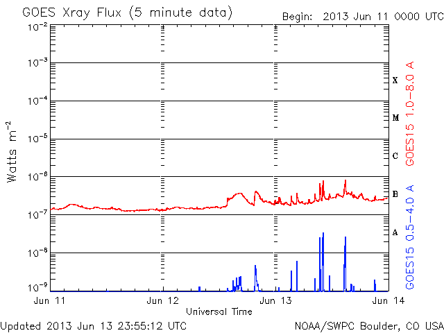 De operationele data in de bovenstaande grafiek werd aangepast om de schaalfactor te verwijderen die werd toegepast door het Space Weather Prediction Center (SWPC). Vanwege de SWPC-schaalfactor in de operationele data werden de zonnevlammen 42% kleiner gerapporteerd dan deze in de wetenschappelijke data. De schaalfactor werd ook verwijderd uit de lijst met zonnevlammen om de werkelijke fysieke eenheden weer te geven.