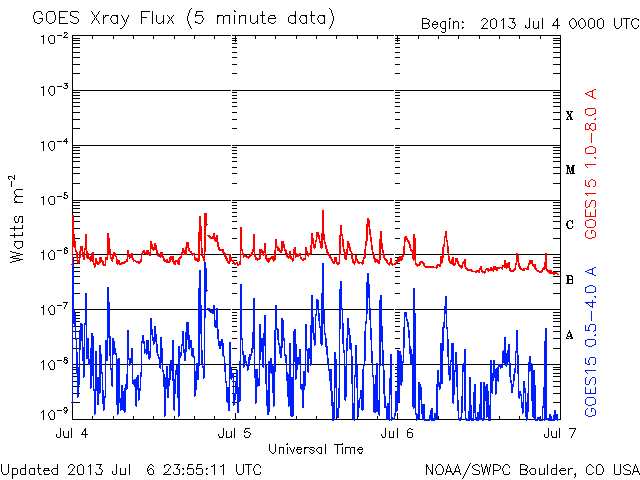 De operationele data in de bovenstaande grafiek werd aangepast om de schaalfactor te verwijderen die werd toegepast door het Space Weather Prediction Center (SWPC). Vanwege de SWPC-schaalfactor in de operationele data werden de zonnevlammen 42% kleiner gerapporteerd dan deze in de wetenschappelijke data. De schaalfactor werd ook verwijderd uit de lijst met zonnevlammen om de werkelijke fysieke eenheden weer te geven.
