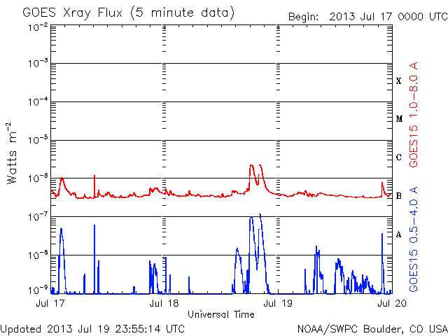 De operationele data in de bovenstaande grafiek werd aangepast om de schaalfactor te verwijderen die werd toegepast door het Space Weather Prediction Center (SWPC). Vanwege de SWPC-schaalfactor in de operationele data werden de zonnevlammen 42% kleiner gerapporteerd dan deze in de wetenschappelijke data. De schaalfactor werd ook verwijderd uit de lijst met zonnevlammen om de werkelijke fysieke eenheden weer te geven.