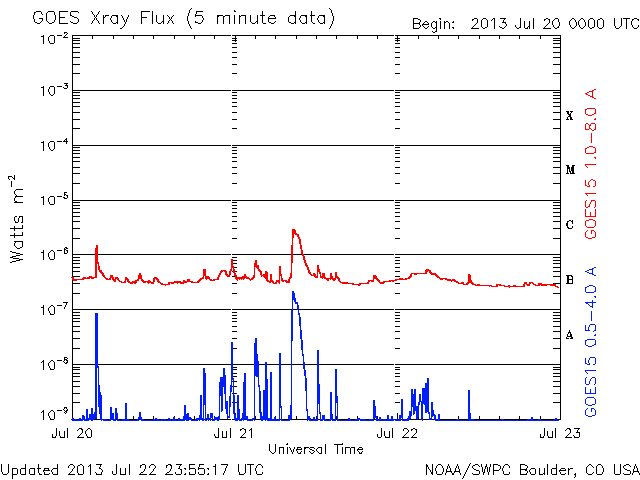 De operationele data in de bovenstaande grafiek werd aangepast om de schaalfactor te verwijderen die werd toegepast door het Space Weather Prediction Center (SWPC). Vanwege de SWPC-schaalfactor in de operationele data werden de zonnevlammen 42% kleiner gerapporteerd dan deze in de wetenschappelijke data. De schaalfactor werd ook verwijderd uit de lijst met zonnevlammen om de werkelijke fysieke eenheden weer te geven.
