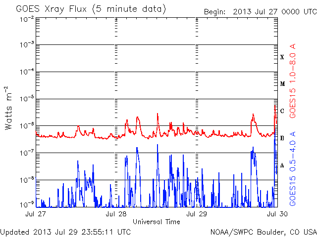De operationele data in de bovenstaande grafiek werd aangepast om de schaalfactor te verwijderen die werd toegepast door het Space Weather Prediction Center (SWPC). Vanwege de SWPC-schaalfactor in de operationele data werden de zonnevlammen 42% kleiner gerapporteerd dan deze in de wetenschappelijke data. De schaalfactor werd ook verwijderd uit de lijst met zonnevlammen om de werkelijke fysieke eenheden weer te geven.
