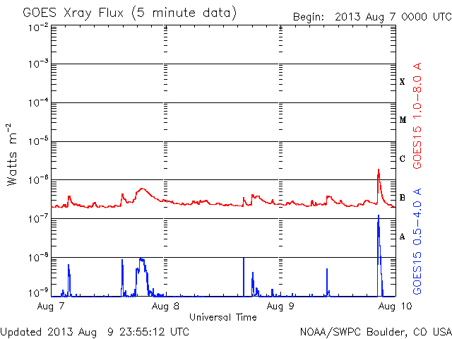 De operationele data in de bovenstaande grafiek werd aangepast om de schaalfactor te verwijderen die werd toegepast door het Space Weather Prediction Center (SWPC). Vanwege de SWPC-schaalfactor in de operationele data werden de zonnevlammen 42% kleiner gerapporteerd dan deze in de wetenschappelijke data. De schaalfactor werd ook verwijderd uit de lijst met zonnevlammen om de werkelijke fysieke eenheden weer te geven.