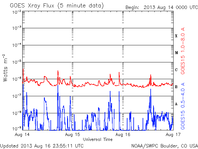 De operationele data in de bovenstaande grafiek werd aangepast om de schaalfactor te verwijderen die werd toegepast door het Space Weather Prediction Center (SWPC). Vanwege de SWPC-schaalfactor in de operationele data werden de zonnevlammen 42% kleiner gerapporteerd dan deze in de wetenschappelijke data. De schaalfactor werd ook verwijderd uit de lijst met zonnevlammen om de werkelijke fysieke eenheden weer te geven.