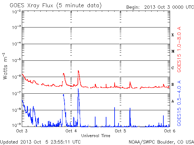 De operationele data in de bovenstaande grafiek werd aangepast om de schaalfactor te verwijderen die werd toegepast door het Space Weather Prediction Center (SWPC). Vanwege de SWPC-schaalfactor in de operationele data werden de zonnevlammen 42% kleiner gerapporteerd dan deze in de wetenschappelijke data. De schaalfactor werd ook verwijderd uit de lijst met zonnevlammen om de werkelijke fysieke eenheden weer te geven.