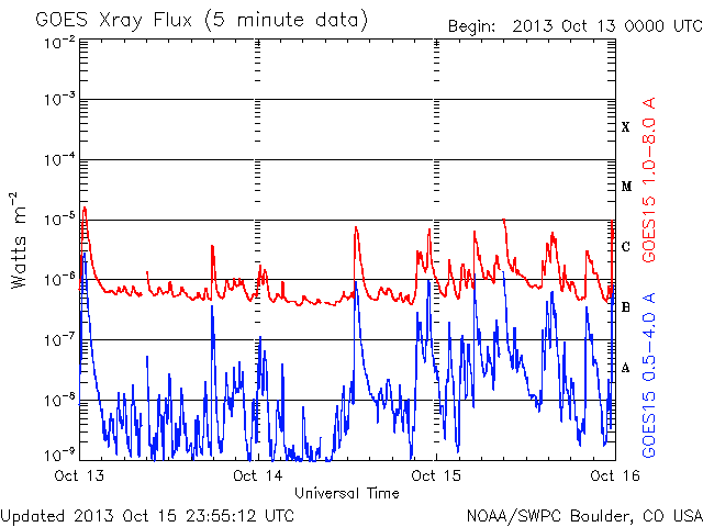 De operationele data in de bovenstaande grafiek werd aangepast om de schaalfactor te verwijderen die werd toegepast door het Space Weather Prediction Center (SWPC). Vanwege de SWPC-schaalfactor in de operationele data werden de zonnevlammen 42% kleiner gerapporteerd dan deze in de wetenschappelijke data. De schaalfactor werd ook verwijderd uit de lijst met zonnevlammen om de werkelijke fysieke eenheden weer te geven.