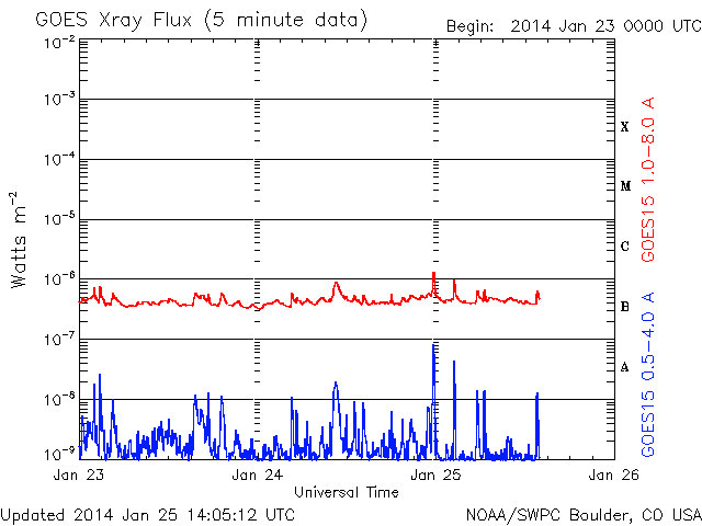 De operationele data in de bovenstaande grafiek werd aangepast om de schaalfactor te verwijderen die werd toegepast door het Space Weather Prediction Center (SWPC). Vanwege de SWPC-schaalfactor in de operationele data werden de zonnevlammen 42% kleiner gerapporteerd dan deze in de wetenschappelijke data. De schaalfactor werd ook verwijderd uit de lijst met zonnevlammen om de werkelijke fysieke eenheden weer te geven.