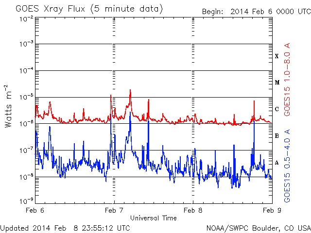 De operationele data in de bovenstaande grafiek werd aangepast om de schaalfactor te verwijderen die werd toegepast door het Space Weather Prediction Center (SWPC). Vanwege de SWPC-schaalfactor in de operationele data werden de zonnevlammen 42% kleiner gerapporteerd dan deze in de wetenschappelijke data. De schaalfactor werd ook verwijderd uit de lijst met zonnevlammen om de werkelijke fysieke eenheden weer te geven.
