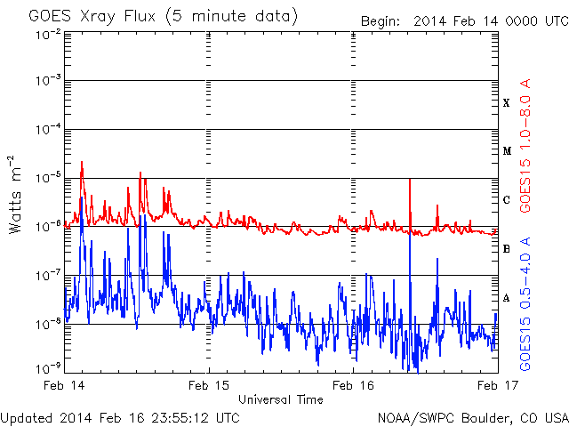 De operationele data in de bovenstaande grafiek werd aangepast om de schaalfactor te verwijderen die werd toegepast door het Space Weather Prediction Center (SWPC). Vanwege de SWPC-schaalfactor in de operationele data werden de zonnevlammen 42% kleiner gerapporteerd dan deze in de wetenschappelijke data. De schaalfactor werd ook verwijderd uit de lijst met zonnevlammen om de werkelijke fysieke eenheden weer te geven.