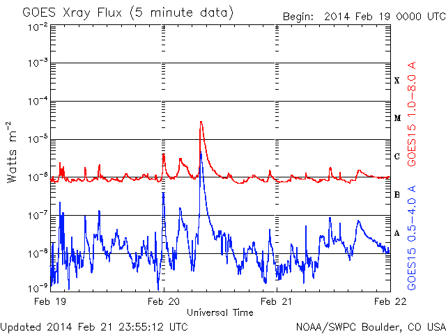De operationele data in de bovenstaande grafiek werd aangepast om de schaalfactor te verwijderen die werd toegepast door het Space Weather Prediction Center (SWPC). Vanwege de SWPC-schaalfactor in de operationele data werden de zonnevlammen 42% kleiner gerapporteerd dan deze in de wetenschappelijke data. De schaalfactor werd ook verwijderd uit de lijst met zonnevlammen om de werkelijke fysieke eenheden weer te geven.