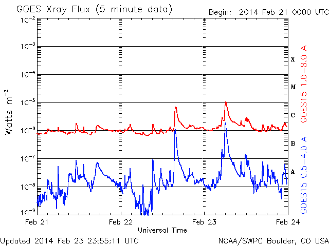 De operationele data in de bovenstaande grafiek werd aangepast om de schaalfactor te verwijderen die werd toegepast door het Space Weather Prediction Center (SWPC). Vanwege de SWPC-schaalfactor in de operationele data werden de zonnevlammen 42% kleiner gerapporteerd dan deze in de wetenschappelijke data. De schaalfactor werd ook verwijderd uit de lijst met zonnevlammen om de werkelijke fysieke eenheden weer te geven.
