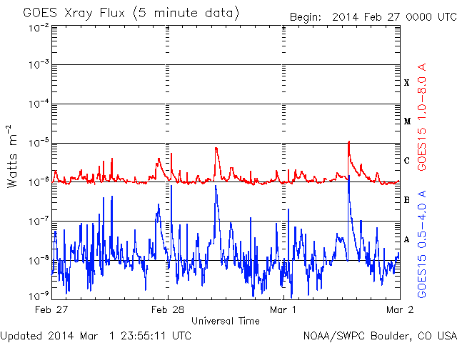 De operationele data in de bovenstaande grafiek werd aangepast om de schaalfactor te verwijderen die werd toegepast door het Space Weather Prediction Center (SWPC). Vanwege de SWPC-schaalfactor in de operationele data werden de zonnevlammen 42% kleiner gerapporteerd dan deze in de wetenschappelijke data. De schaalfactor werd ook verwijderd uit de lijst met zonnevlammen om de werkelijke fysieke eenheden weer te geven.