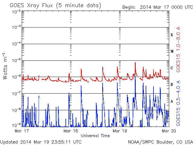 De operationele data in de bovenstaande grafiek werd aangepast om de schaalfactor te verwijderen die werd toegepast door het Space Weather Prediction Center (SWPC). Vanwege de SWPC-schaalfactor in de operationele data werden de zonnevlammen 42% kleiner gerapporteerd dan deze in de wetenschappelijke data. De schaalfactor werd ook verwijderd uit de lijst met zonnevlammen om de werkelijke fysieke eenheden weer te geven.