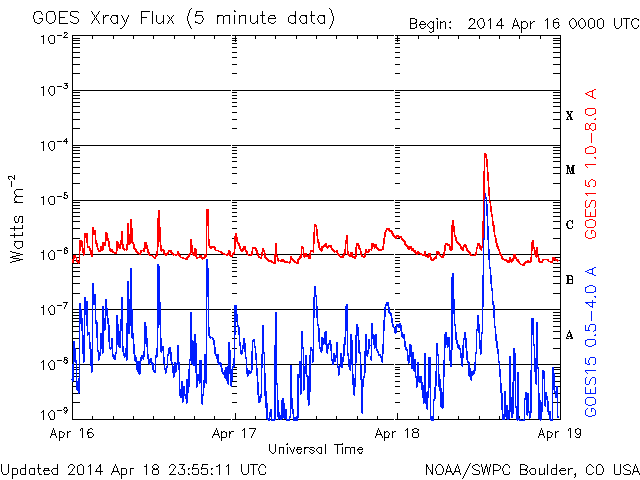 De operationele data in de bovenstaande grafiek werd aangepast om de schaalfactor te verwijderen die werd toegepast door het Space Weather Prediction Center (SWPC). Vanwege de SWPC-schaalfactor in de operationele data werden de zonnevlammen 42% kleiner gerapporteerd dan deze in de wetenschappelijke data. De schaalfactor werd ook verwijderd uit de lijst met zonnevlammen om de werkelijke fysieke eenheden weer te geven.
