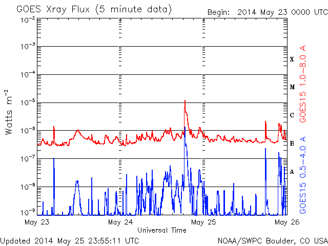 De operationele data in de bovenstaande grafiek werd aangepast om de schaalfactor te verwijderen die werd toegepast door het Space Weather Prediction Center (SWPC). Vanwege de SWPC-schaalfactor in de operationele data werden de zonnevlammen 42% kleiner gerapporteerd dan deze in de wetenschappelijke data. De schaalfactor werd ook verwijderd uit de lijst met zonnevlammen om de werkelijke fysieke eenheden weer te geven.