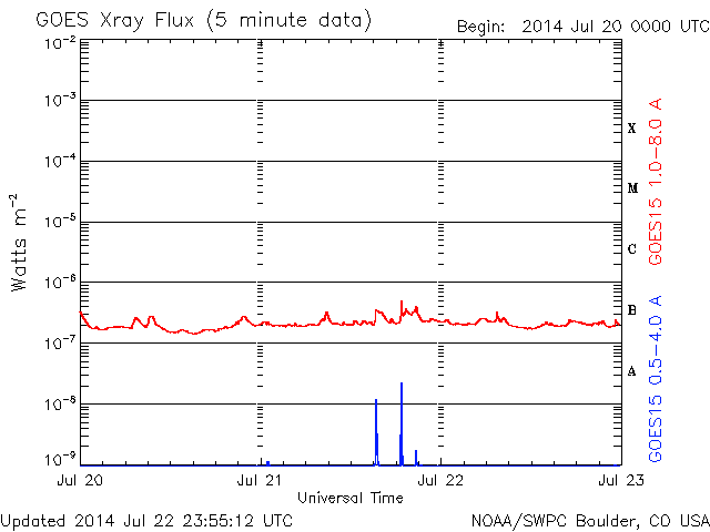 De operationele data in de bovenstaande grafiek werd aangepast om de schaalfactor te verwijderen die werd toegepast door het Space Weather Prediction Center (SWPC). Vanwege de SWPC-schaalfactor in de operationele data werden de zonnevlammen 42% kleiner gerapporteerd dan deze in de wetenschappelijke data. De schaalfactor werd ook verwijderd uit de lijst met zonnevlammen om de werkelijke fysieke eenheden weer te geven.