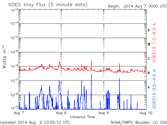 De operationele data in de bovenstaande grafiek werd aangepast om de schaalfactor te verwijderen die werd toegepast door het Space Weather Prediction Center (SWPC). Vanwege de SWPC-schaalfactor in de operationele data werden de zonnevlammen 42% kleiner gerapporteerd dan deze in de wetenschappelijke data. De schaalfactor werd ook verwijderd uit de lijst met zonnevlammen om de werkelijke fysieke eenheden weer te geven.