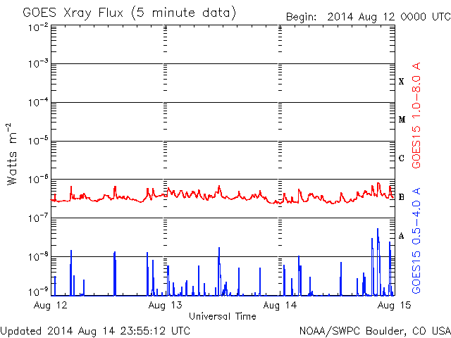 De operationele data in de bovenstaande grafiek werd aangepast om de schaalfactor te verwijderen die werd toegepast door het Space Weather Prediction Center (SWPC). Vanwege de SWPC-schaalfactor in de operationele data werden de zonnevlammen 42% kleiner gerapporteerd dan deze in de wetenschappelijke data. De schaalfactor werd ook verwijderd uit de lijst met zonnevlammen om de werkelijke fysieke eenheden weer te geven.