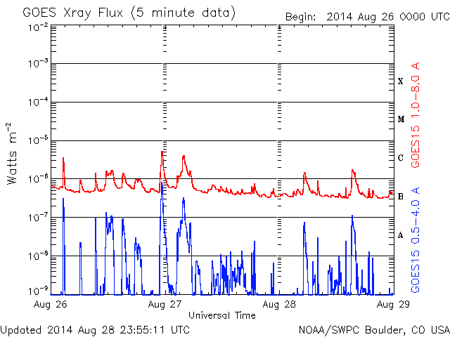 De operationele data in de bovenstaande grafiek werd aangepast om de schaalfactor te verwijderen die werd toegepast door het Space Weather Prediction Center (SWPC). Vanwege de SWPC-schaalfactor in de operationele data werden de zonnevlammen 42% kleiner gerapporteerd dan deze in de wetenschappelijke data. De schaalfactor werd ook verwijderd uit de lijst met zonnevlammen om de werkelijke fysieke eenheden weer te geven.