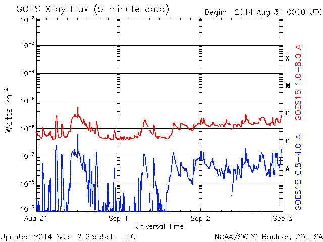 De operationele data in de bovenstaande grafiek werd aangepast om de schaalfactor te verwijderen die werd toegepast door het Space Weather Prediction Center (SWPC). Vanwege de SWPC-schaalfactor in de operationele data werden de zonnevlammen 42% kleiner gerapporteerd dan deze in de wetenschappelijke data. De schaalfactor werd ook verwijderd uit de lijst met zonnevlammen om de werkelijke fysieke eenheden weer te geven.