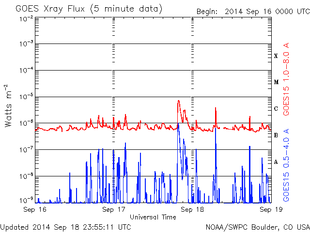 De operationele data in de bovenstaande grafiek werd aangepast om de schaalfactor te verwijderen die werd toegepast door het Space Weather Prediction Center (SWPC). Vanwege de SWPC-schaalfactor in de operationele data werden de zonnevlammen 42% kleiner gerapporteerd dan deze in de wetenschappelijke data. De schaalfactor werd ook verwijderd uit de lijst met zonnevlammen om de werkelijke fysieke eenheden weer te geven.