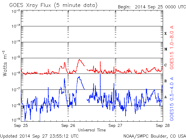 De operationele data in de bovenstaande grafiek werd aangepast om de schaalfactor te verwijderen die werd toegepast door het Space Weather Prediction Center (SWPC). Vanwege de SWPC-schaalfactor in de operationele data werden de zonnevlammen 42% kleiner gerapporteerd dan deze in de wetenschappelijke data. De schaalfactor werd ook verwijderd uit de lijst met zonnevlammen om de werkelijke fysieke eenheden weer te geven.