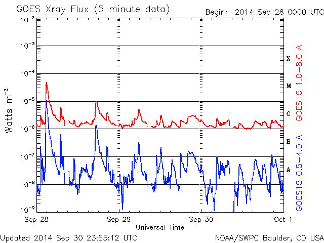 De operationele data in de bovenstaande grafiek werd aangepast om de schaalfactor te verwijderen die werd toegepast door het Space Weather Prediction Center (SWPC). Vanwege de SWPC-schaalfactor in de operationele data werden de zonnevlammen 42% kleiner gerapporteerd dan deze in de wetenschappelijke data. De schaalfactor werd ook verwijderd uit de lijst met zonnevlammen om de werkelijke fysieke eenheden weer te geven.